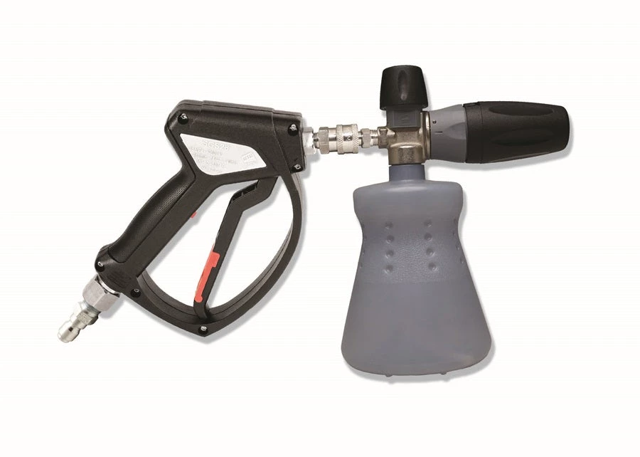MTM Hydro’s Italian Magnum28 Foam Cannon Kit has the newest Foam Cannon in the Industry paired with the newest Spray Gun in the industry. The stylish and robust SGS28 Spray Gun with integrated Stainless Live Swivel is now paired with Stainless fittings and the PF22 Foam Cannon to give you a premium Italian Foam Kit that is unmatched by any other. Complete with the New Stand Up bottle, this kit is unrivaled. Whether you are foaming down your car on the weekend or you are a professional contract cleaner washing multiple vehicles per day, this tool will save you time and money. Simply attach the foam cannon to your pressure washer using one of the included fittings, fill with your desired ratio of chemical and you are up and running. The snub style Magnum28 Kit allows you to fit in tight spaces when cleaning and eliminates reaching 40″” away to adjust your cannon settings.
