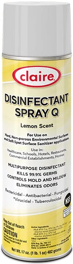 Claire Disinfectant Spray Q EPA Reg. No. 706-111 has demonstrated effectiveness against viruses similar to 2019 Novel Coronavirus (2019-nCoV) on hard non-porous surfaces. Therefore, Claire Disinfectant Spray Q can be used against 2019 Novel Coronavirus (2019-nCoV) when used in accordance with the directions for use against Poliovirus type 1 on hard, non-porous surfaces.