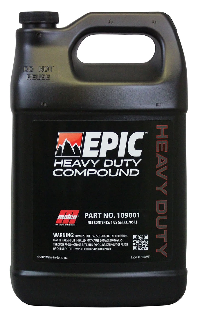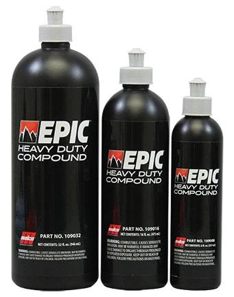EPIC™ Heavy Duty Compound is specially formulated for use with orbital polishers. It is a correcting and polishing compound that removes up to P1500 sand scratches and polishes to a deep gloss in one step.