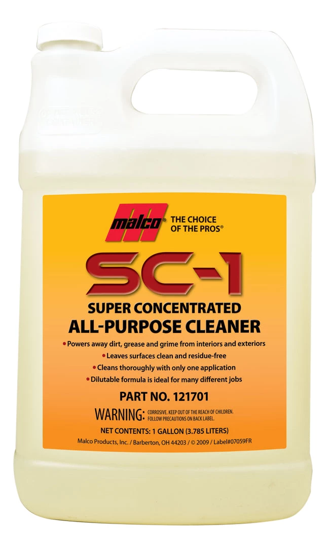 This non-caustic, dye- and fragrance-free cleaner may be used on both vehicle interiors and exteriors without damaging delicate surfaces. Dilute SC-1 up to 1:15 to meet the requirements of your specific job.