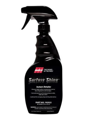 Surface Shine™ Instant Detailer is a slick, hydrophobic, easy-to-use surface enhancer designed to remove dust, fingerprints and smudges and leave an attractive shine on any non-porous, painted surface. This versatile instant detailer can be used as a lubricant for overspray clays and alternatives.