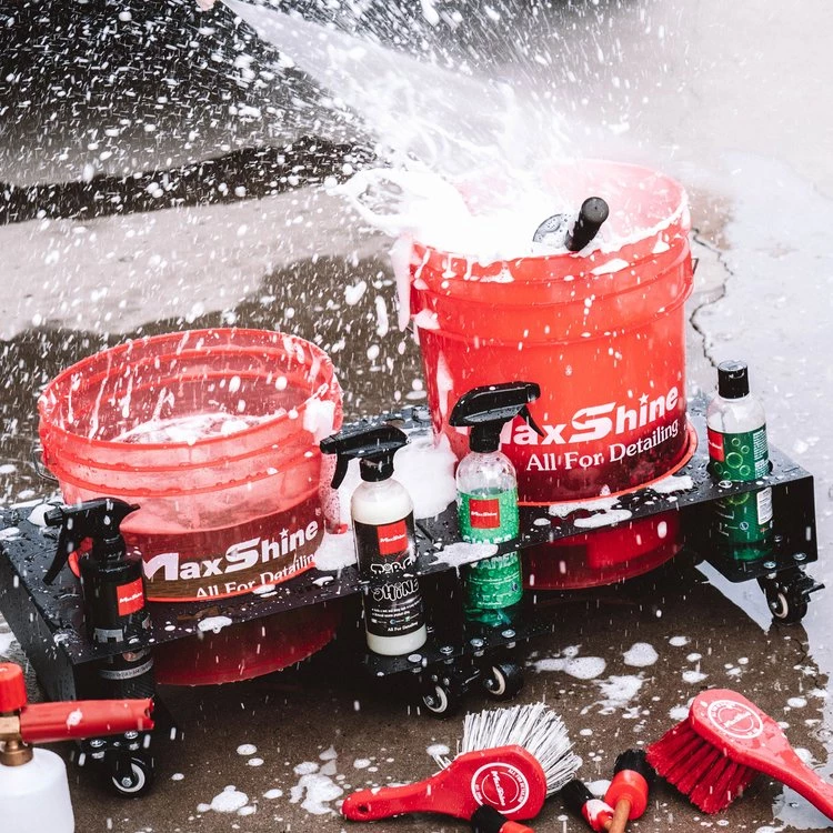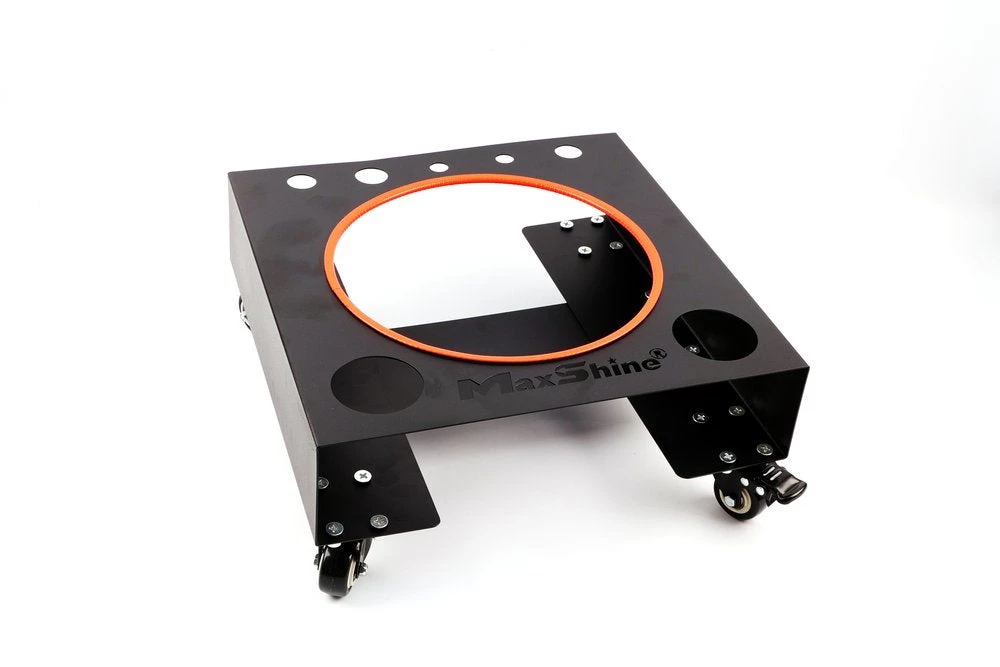Maxshine’s ALL NEW Storage Solution gives you durable mobility with your buckets during a wash. Utilize a single bucket dolly, or using the Bucket Dolly Connector, combine 2 for a rolling two bucket method! Includes spaces for Spray Bottles and Brushes and combines quality steel with specialized spray coating to prevent rust.