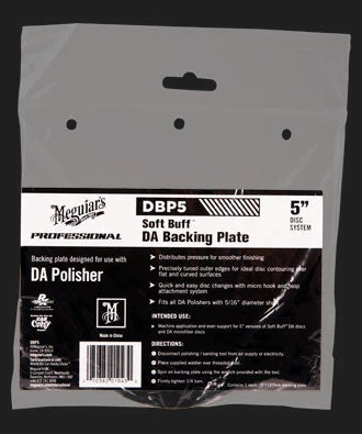 Meguiar’s DA backing plates are designed to distribute pressure evenly for smoother sanding and finishing. The outer edges are precisely tuned for disc contouring over flat and curved surfaces. These backing plates also features a rotation indicator marking that allows the user to recognize backing plate rotation for ideal results. Can be attached to all DA polishers with a 5/16” diameter shaft.