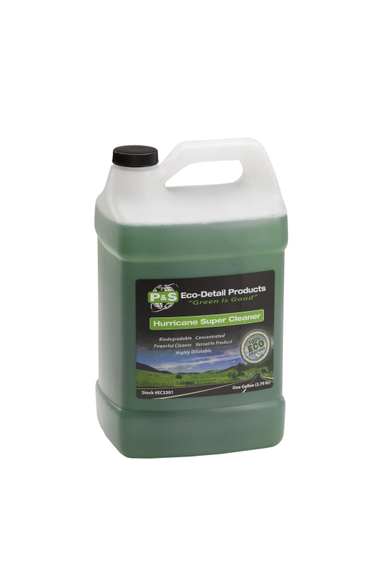 Hurricane Super Cleaner, our environmentally friendly all-purpose cleaner, cuts through grease, grime and dirt with the power you expect from an industrial cleaner. Now you can have it all: extraordinary cleaning power without harsh chemical fumes or residue. Hurricane may be used full strength on tough applications, or easily diluted with water for lighter cleaning applications.
